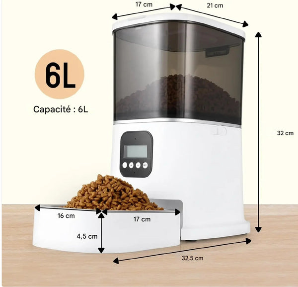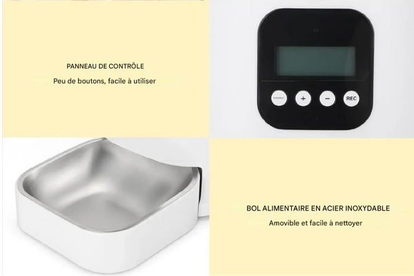 Discover how our automatic dispenser simplifies your dog's meals, avoiding daily stress and forgetfulness.